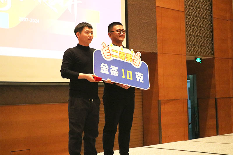 我們進行了一場緊張刺激的抽*環節。經過激烈的角逐,*終,有五位幸運員工獲得了金條10克的獎品。大家紛紛表示,這份獎品不僅是一份物質上的獎勵,更是一份精神上的鼓勵和激勵。